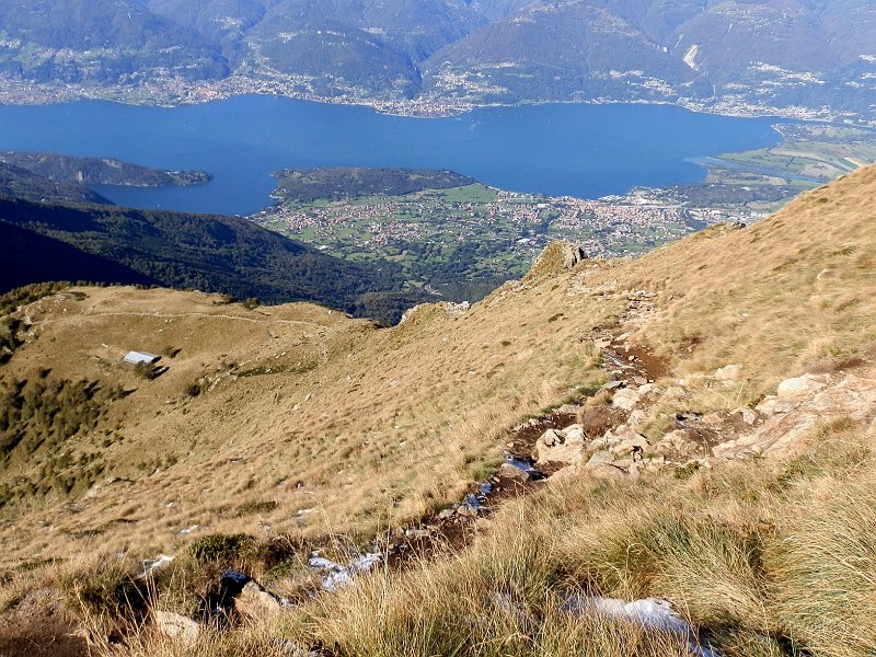 Traverso sopra il secondo alpeggio di Agrogno. Nella foto a sinistra Piona