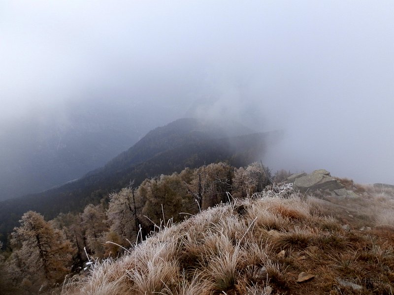 Sbuchiamo in cresta, ma la visibilità resta ... quella che vedete. Qui il lato della Leventina