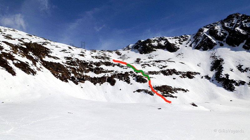 La seconda opzione : "sempre più ripida" è circa al centro del pianoro, segnato con delle paline c''e il sentiero diretto, ripidissimo, nel tratto in verde ci sono catene per aiutarsi (immaginate la pendenza ...)