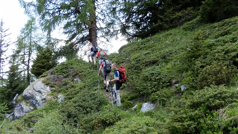 Il sentieroè ben marcato e passa tra boschi, pietraie e rododendri