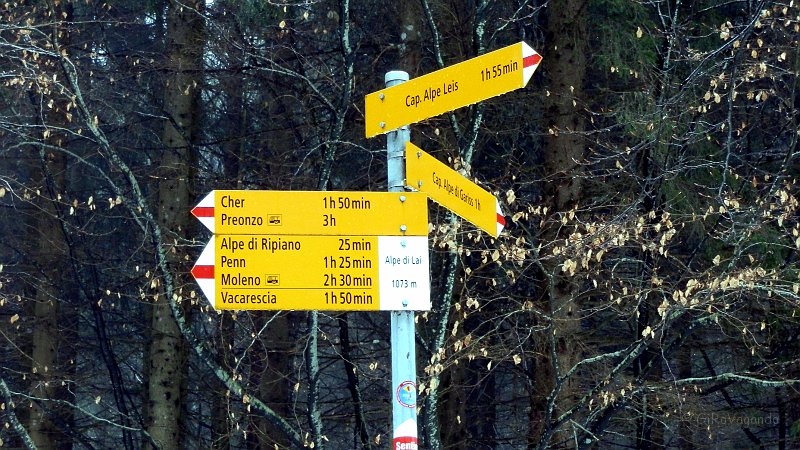 Poco sopra il rifugio la palina che indica la deviazione per Alpe Gariss.