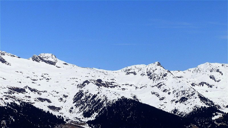 Gana Rossa (a sinistra con la cima quasi piatta), poco a destra il passo, e sotto al terzo traliccio elettrico c'e' il rifugio Gana Rossa