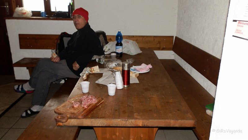 Il bel tavolone con panca L'antipasto di salame è già stato consumato ...