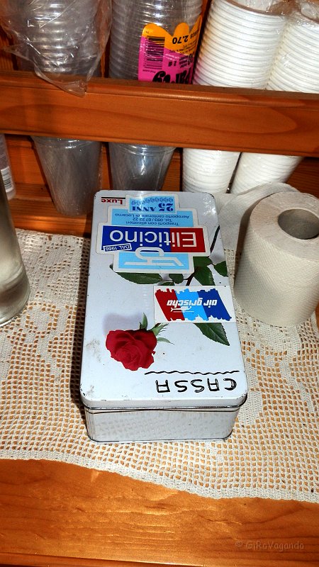 La Cassa. Non è murata ... quindi o ci passano in pochi o c'e' molta fiducia. Le buste vuote sono dentro, il passaggio è di 2 CHF a persona (fermarsi a pranzo e uso legna-gas)