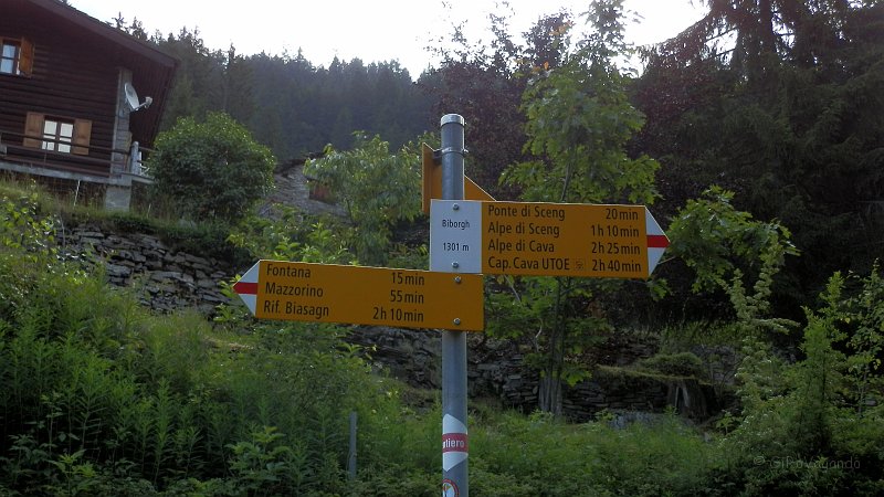 Biborgh 1301, seguire per Alpe Lesgiuna e Passo Giumela (è la freccia gialla che non si legge nella foto)