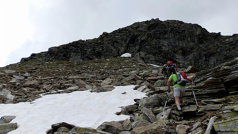 Si sale arrivando sino sotto la torre rocciosa, poi la si aggira sul fianco sinistro