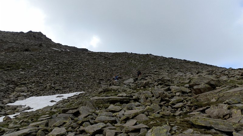Discesa sulle pietraie, aggirando gli ultimi (e molto tardivi) residui di neve