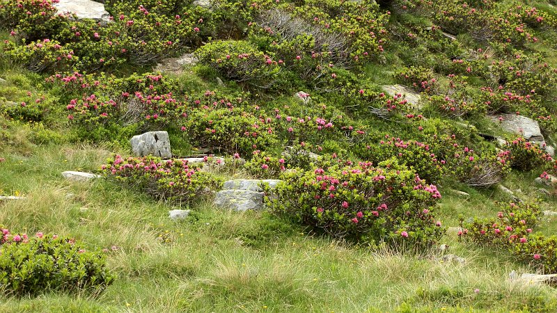 I rododendri sono in fioritura, certo che è un pò tardi ma la neve si è sciolta da poche settimane