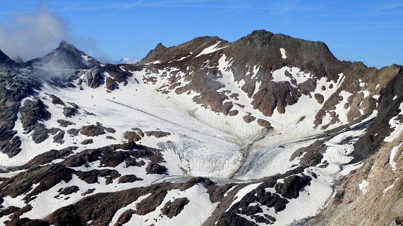 Pizzo Fiorina 2925mt (a sx) e Marchhorn 2962mt, con un laghetto alla base del ghiacciaio