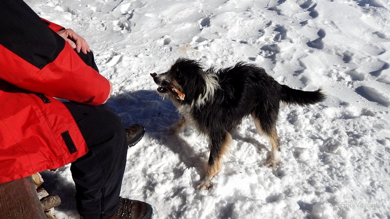 Quando avevamo perso le speranze di mangiare qualcosa al caldo e di pronto (non abbiamo portato nulla pensando di mangiare in rifugio), ecco che compare un simpatico giocherellone, è il cane dei rifugisti, quindi arriveranno !
