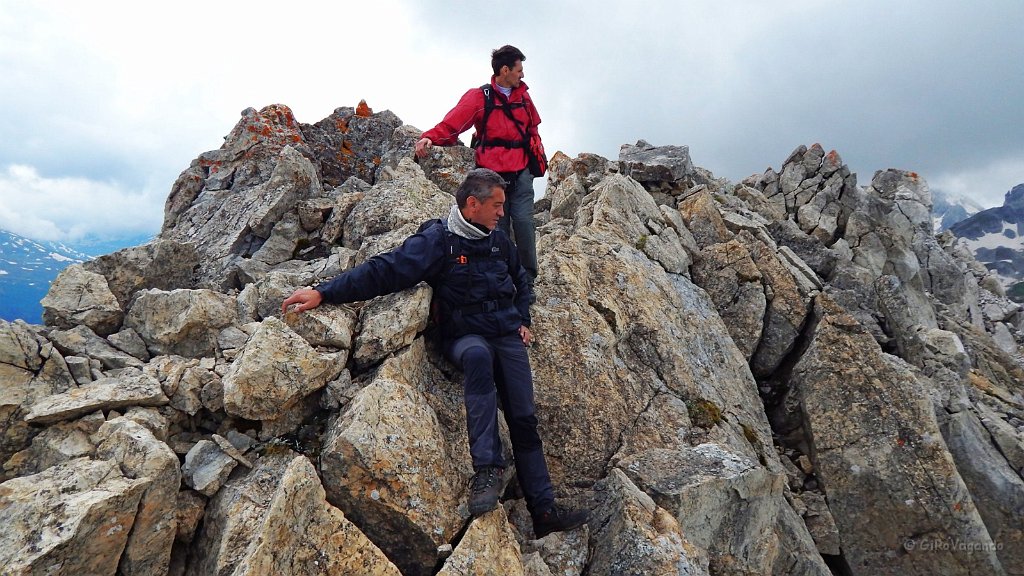 Con facile arrampicata si sale in vetta, la croce è poco oltre