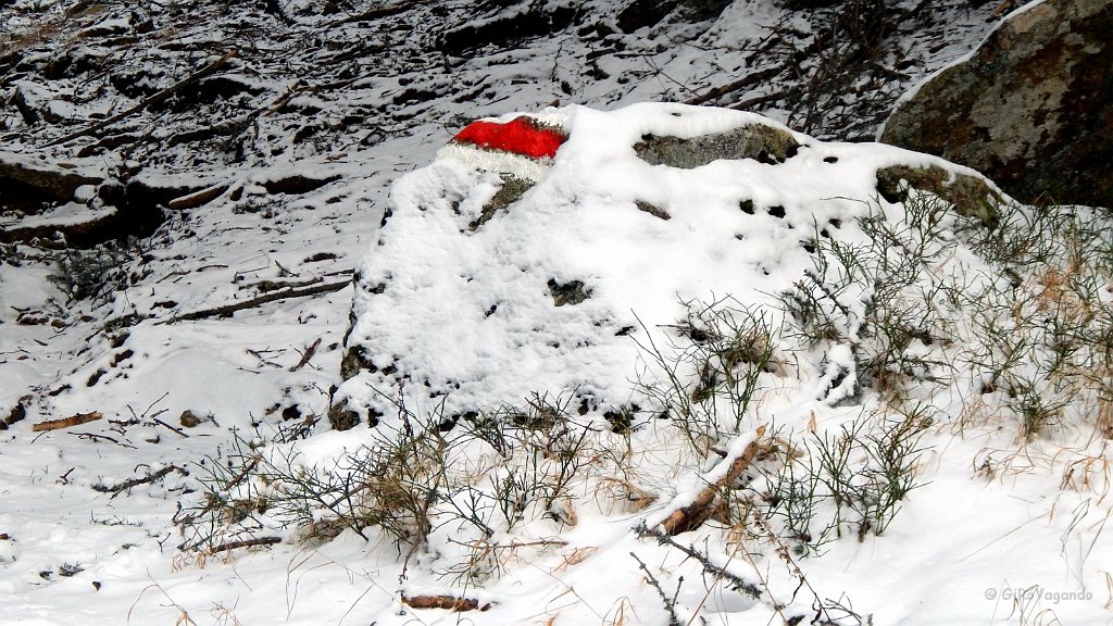 Senza neve si vedono anche i bolli di vernice sui sassi