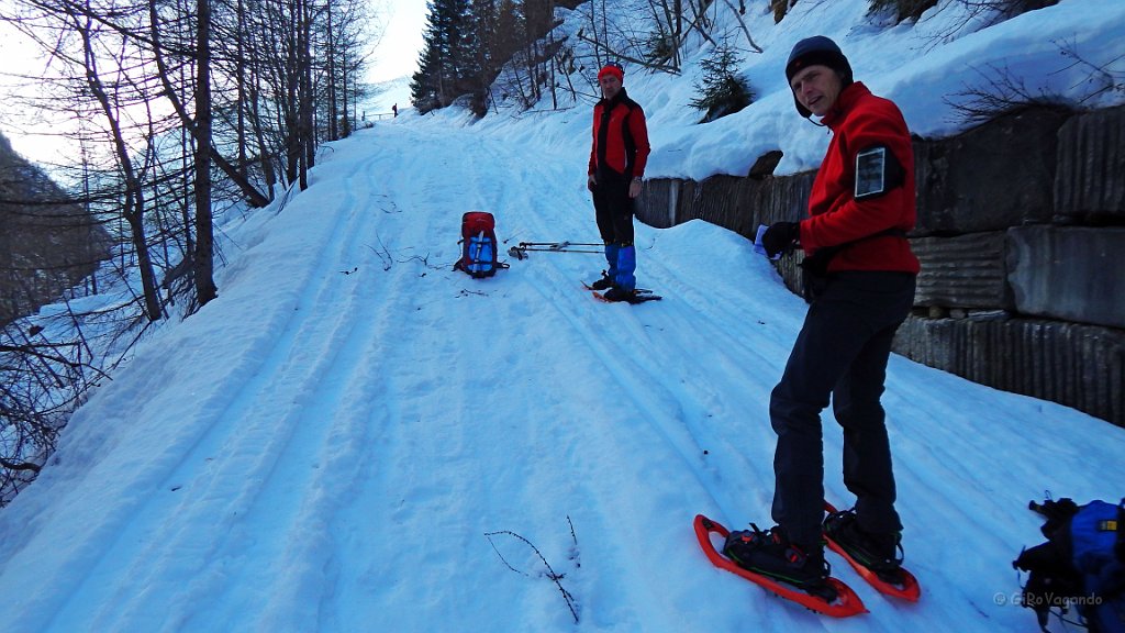 Poco dopo il ponte, calziamo le ciaspole