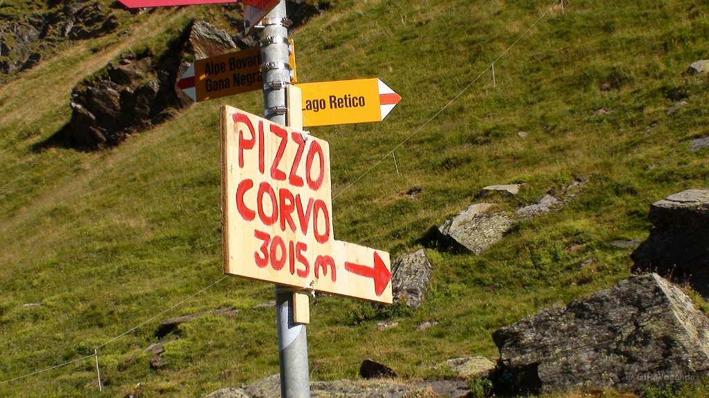 Bivio sul sentiero Bovarina - Gana Negra. Prendiamo a destra per Alpe di Redich, ma anche per il nuovo sentiero Pizzo del Corvo