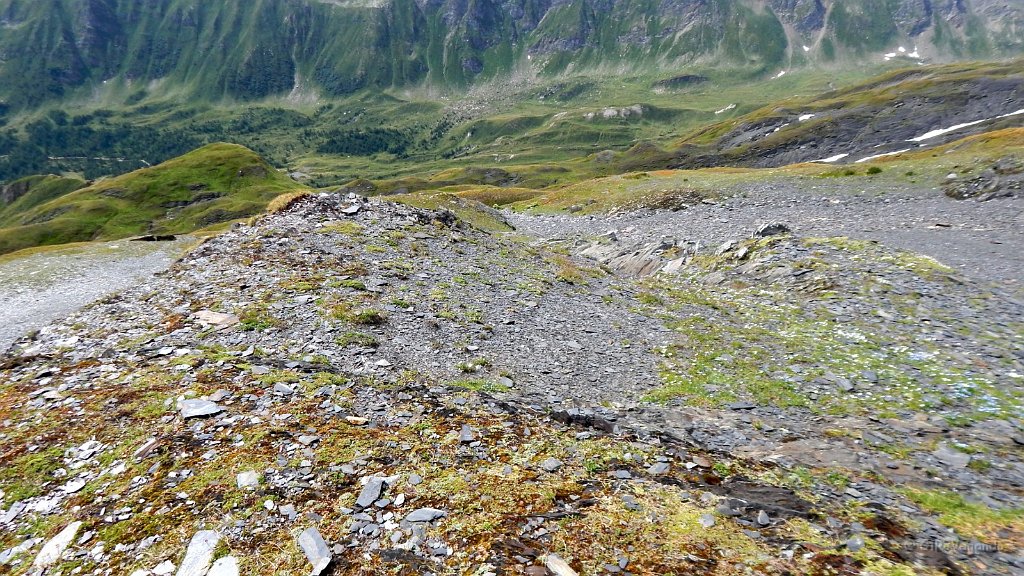 Si sale sempre molto ripido, tra prato, scisti, roccia, ciottolato e terreno poco stabile