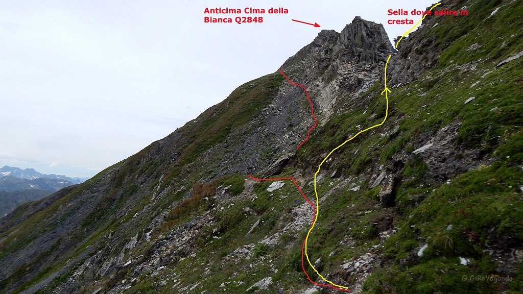 Un dettaglio del percorso: la traccia gialla indica un dietro-front alla sella per prendere la cresta, avanti non era "simpatico" continuare
