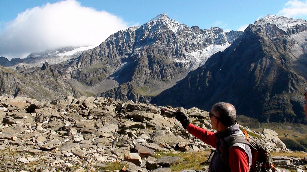 Francesco spiega la via alpinistica per l' Adula