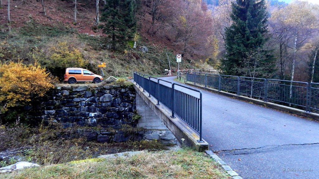 La sbarra che blocca il traffico, e la strada che dobbiamo seguire fino al primo tornante