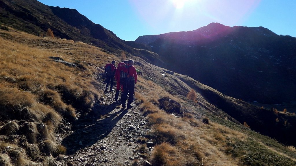 Al centro della foto si vede il tetto della stalla dell' Alpe di Poltrinone, qui noi abbandoniamo il sentiero