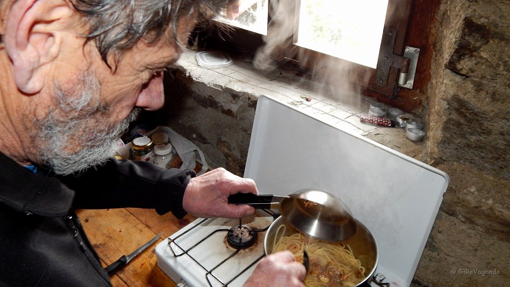 Il Barba al lavoro per preparare spaghetti aglio e olio
