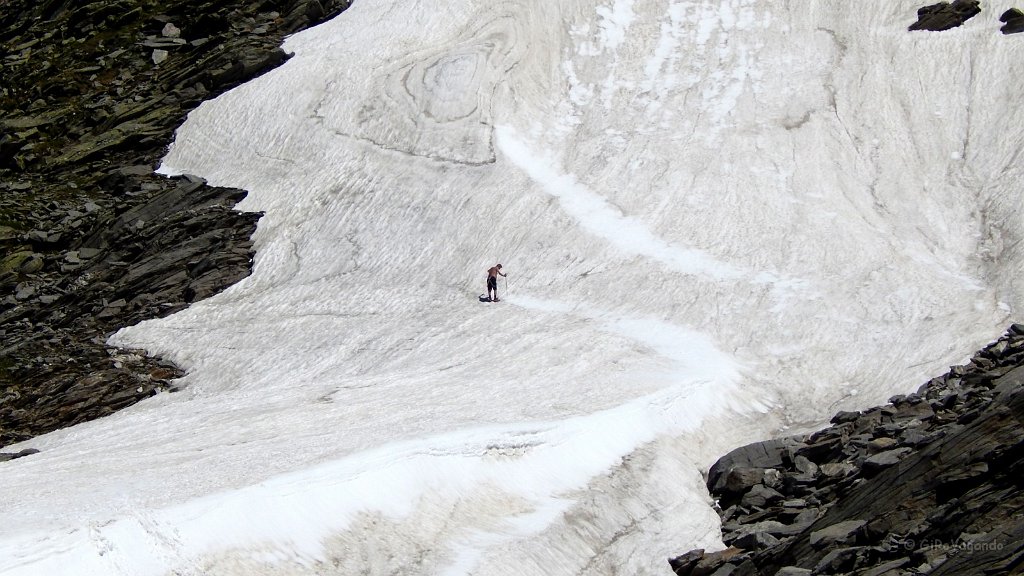 Arriva sul ripido, dove i ramponcini non tengono più ...