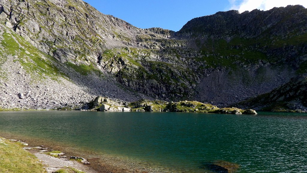 Non c'e' sentiero, quindi ognuno cerca la via migliore. Noi siamo saliti a destra lungo la pietraia, tagliando poi verso la bocchetta