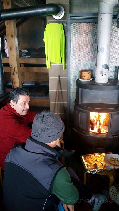 Tutti attorno alla stufa a chiaccherare, pranzare e scaldarsi