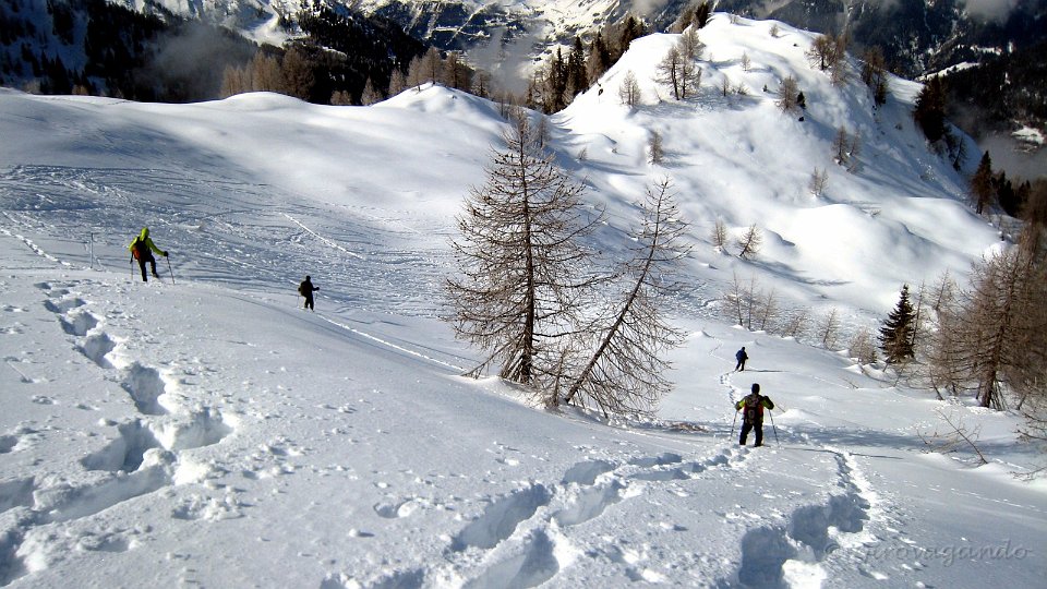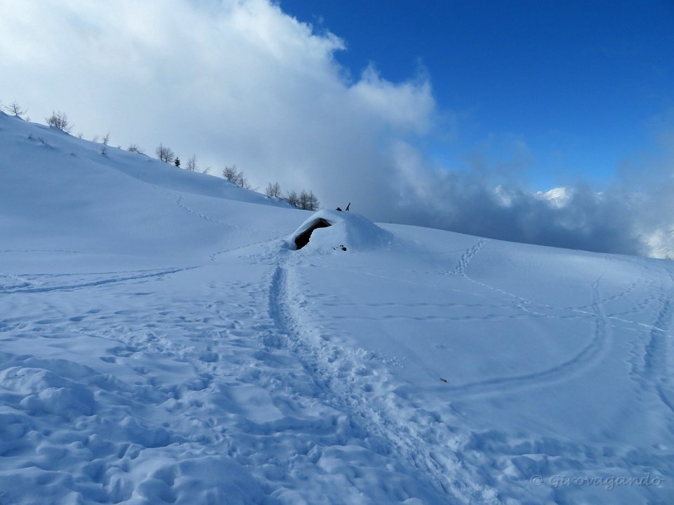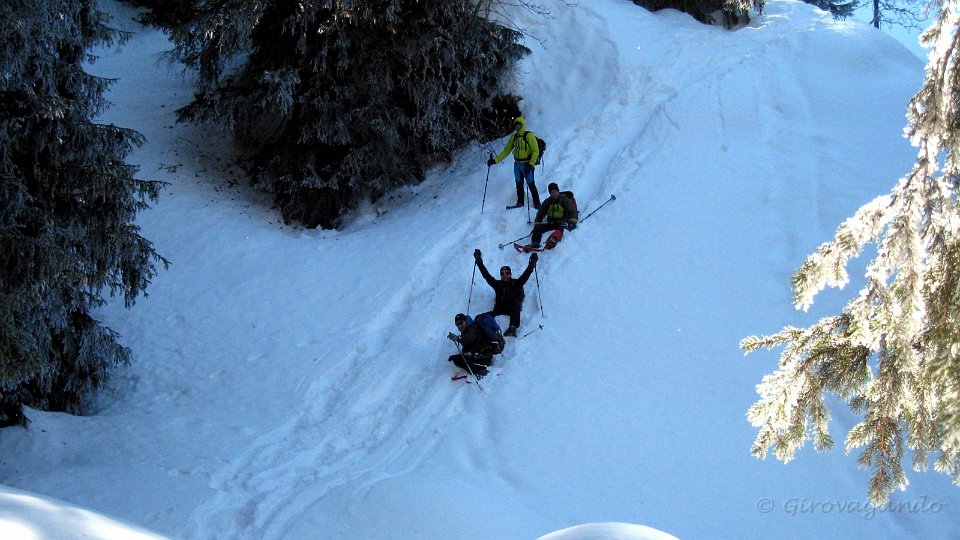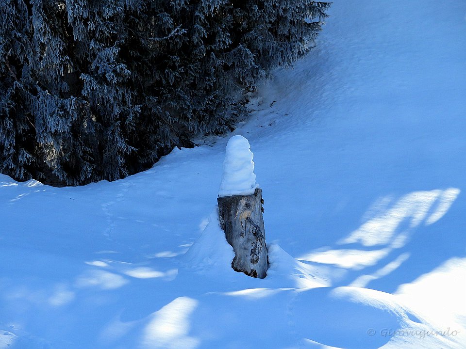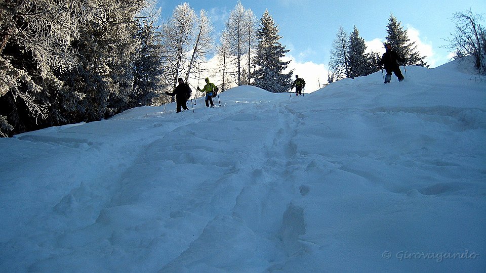 Per la prima volta troviamo la strada forestale battuta dal gatto delle nevi