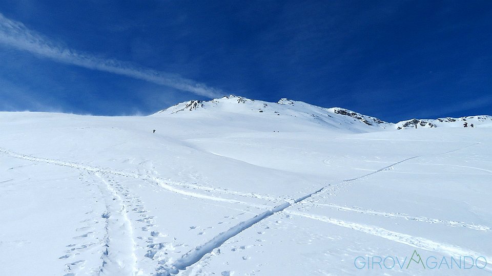 9 Il costone da risalire è quello che si vede a sinistra percorso dagli sci |