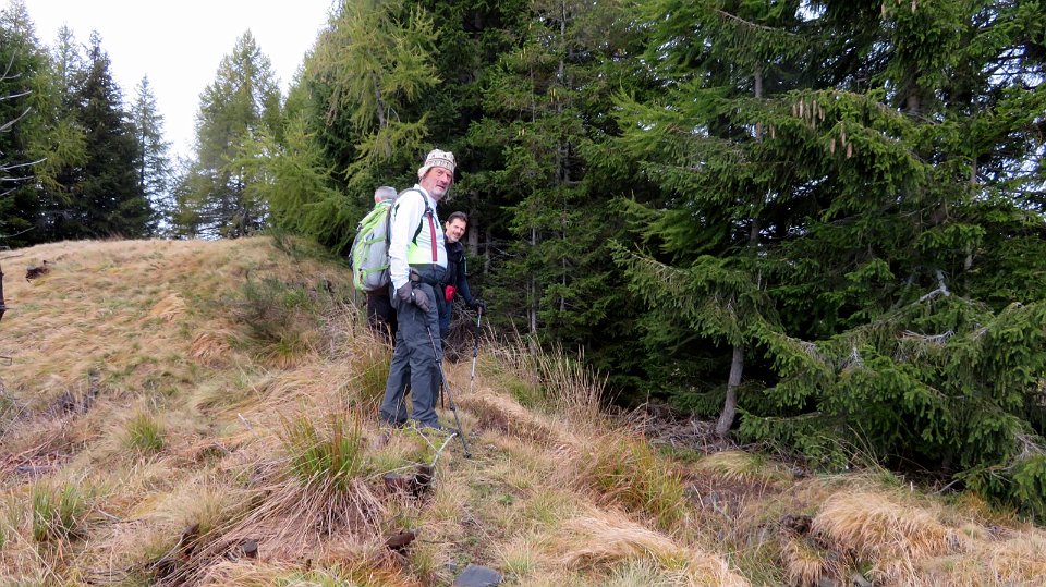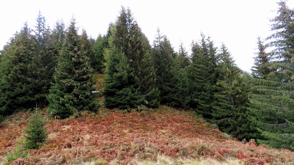 Per raggingere la cresta si attraversa questa fitta abetaia