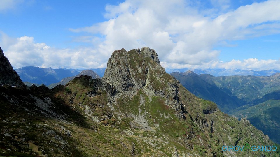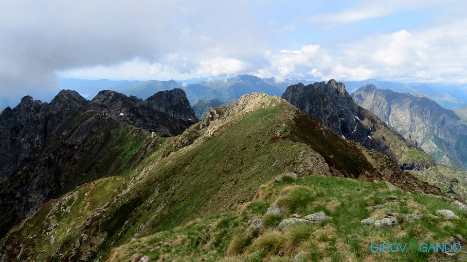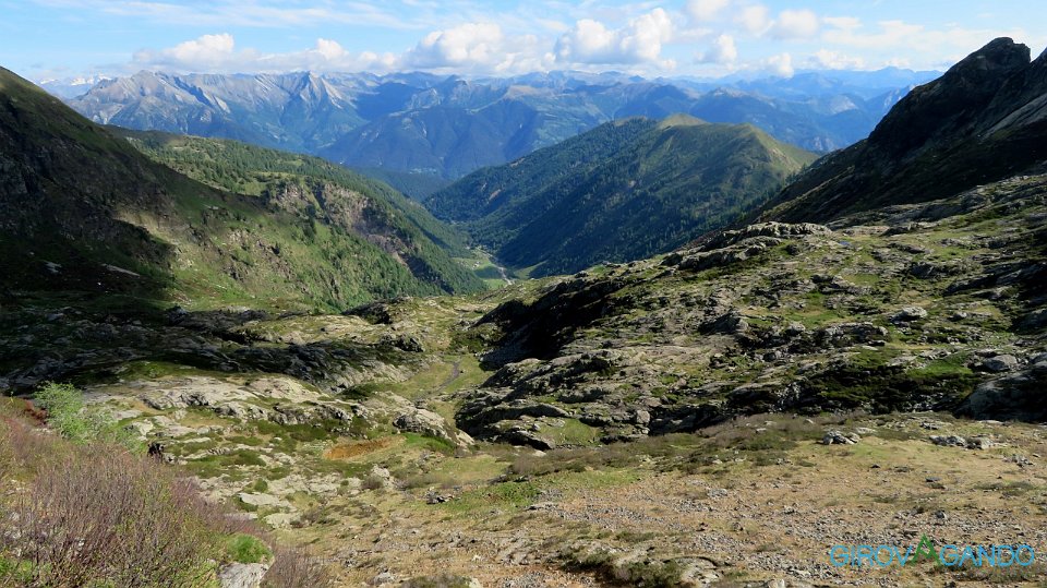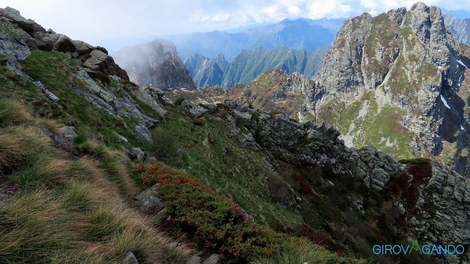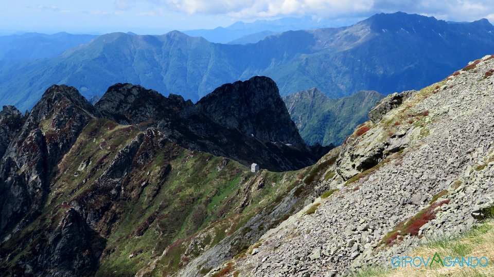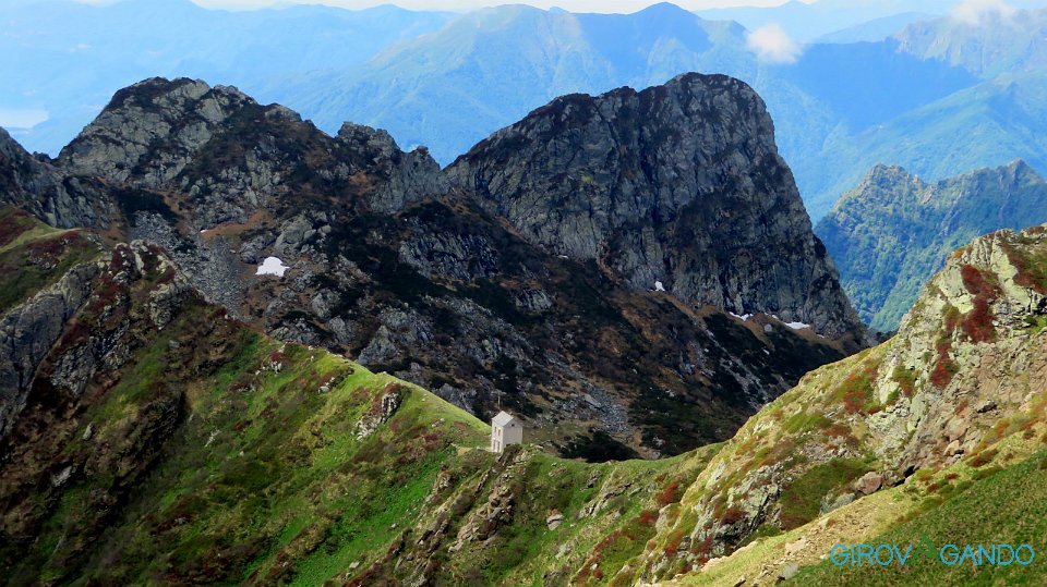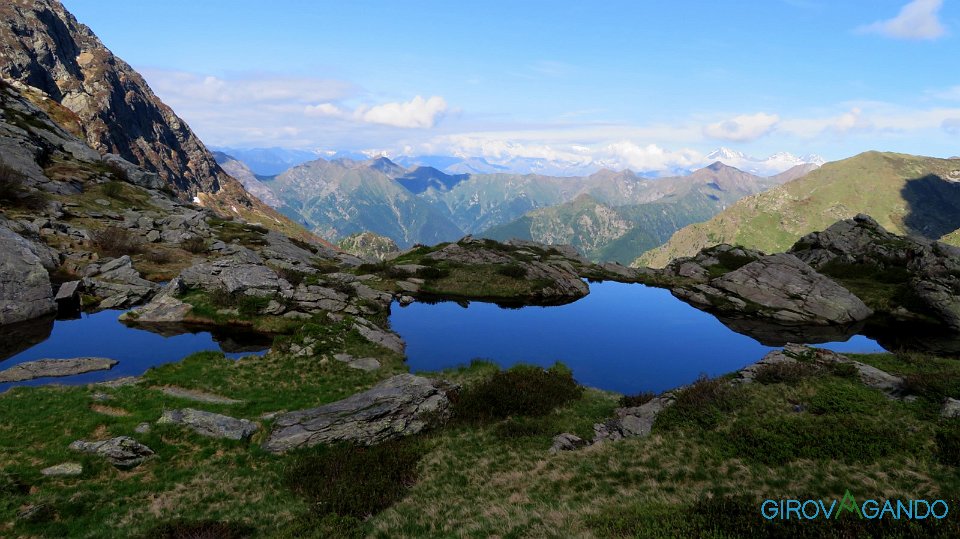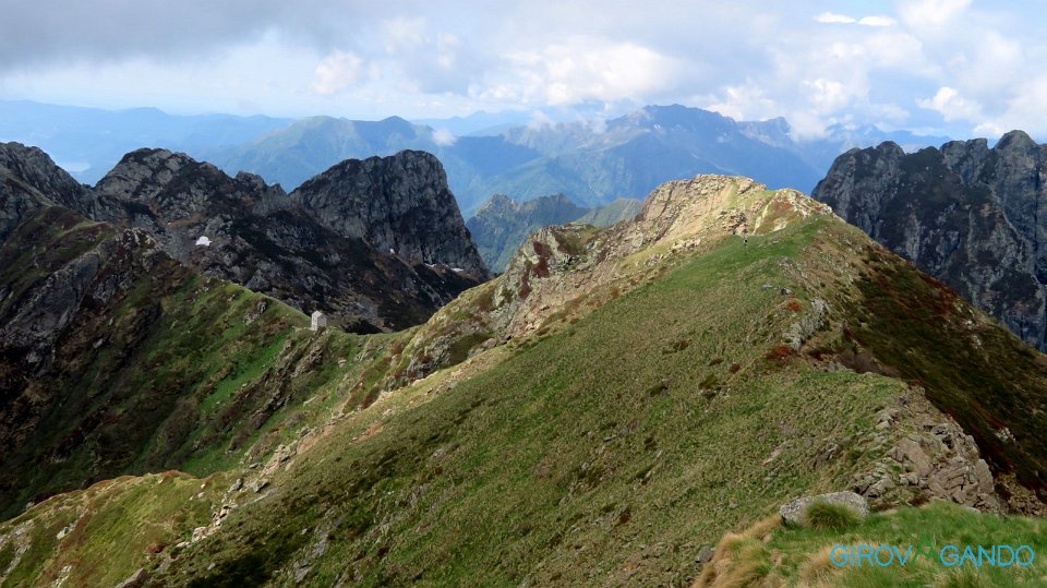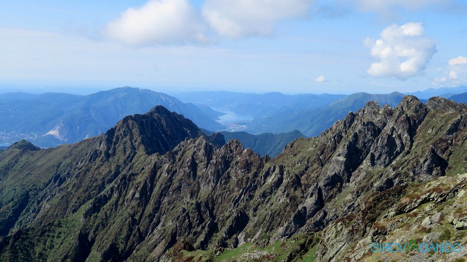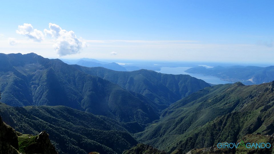 Dalla bocchetta vista verso i laghi: da sx il lago di Varese, quello di Monate, Lago Maggiore e a dx il Lago d'Orta
