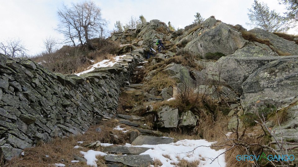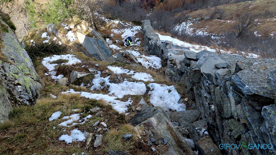 Eccoci al bivio per il Sassariente, noi proseguiamo lungo il muro dei Polacchi