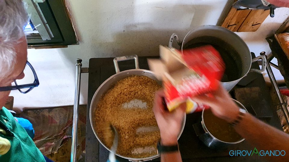 45 Mentre all'interno cuoco e aiuto-cuoco preparano il risotto |