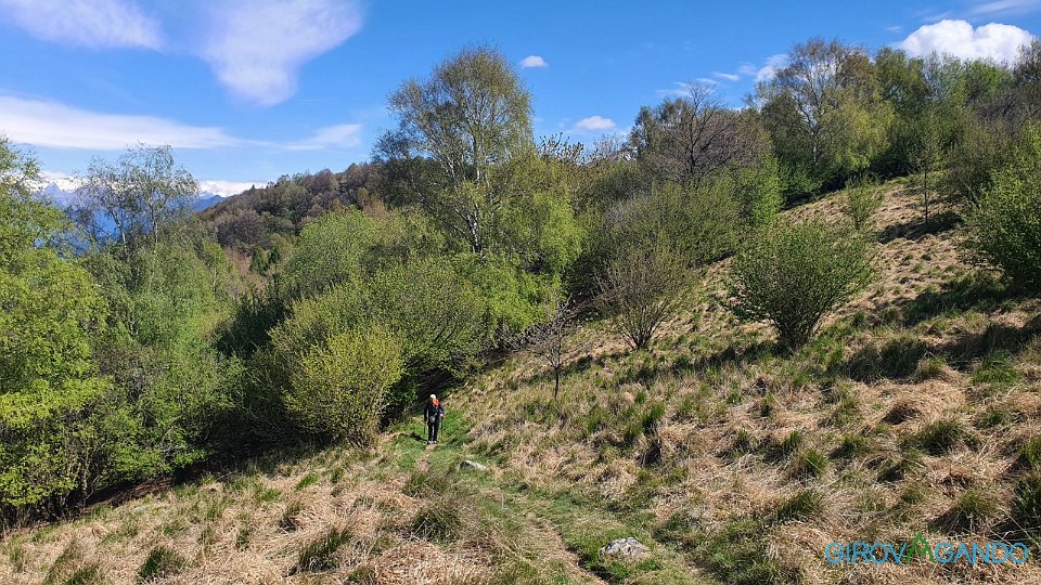 Poco prima del monumento degli Alpini tagliamo per prati verso la strada