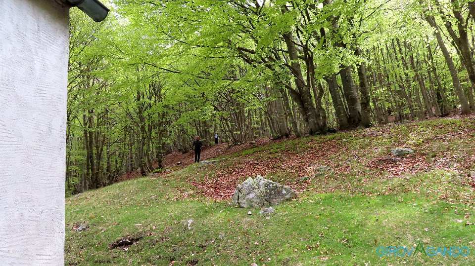 Il sentiero di ritorno è tutto nel bosco, appena si esce su prato si arriva al parcheggio