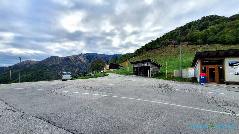 Sull'altro lato il parcheggio all'Alpe Neggia