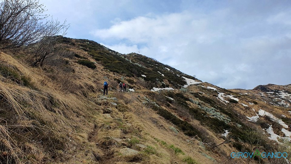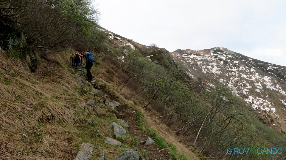 Non prendiamo la via più diretta ma aggiriamo il costone che guarda verso il lago