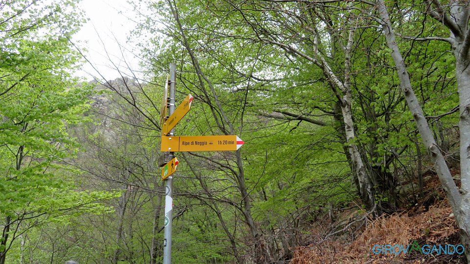 A Q1220 si trova il bivio per Alpe Neggia, si risale ripidi 200mt circa