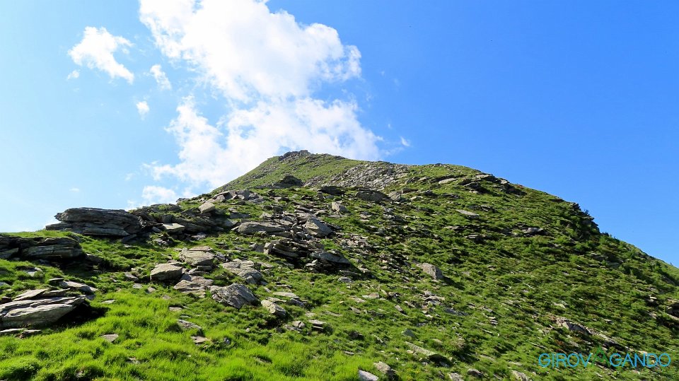 Proseguiamo per un breve tratto verso il lago poi abbandoniamo il sentiero e senza traccia saliamo verso la cima (la prima a destra)