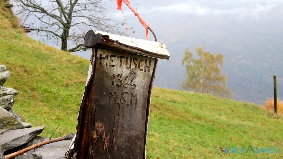 21 Località Canvasgia, qui ci sono due possibilità: verso destra si sale a Nadro e da qui a Compiett, a sinistra il sentiero principale |