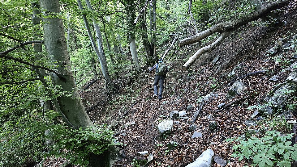 15 Si prosegue in salita, con strappi anche moito ripidi e peggio ancora insidiosi per il terreno viscido |