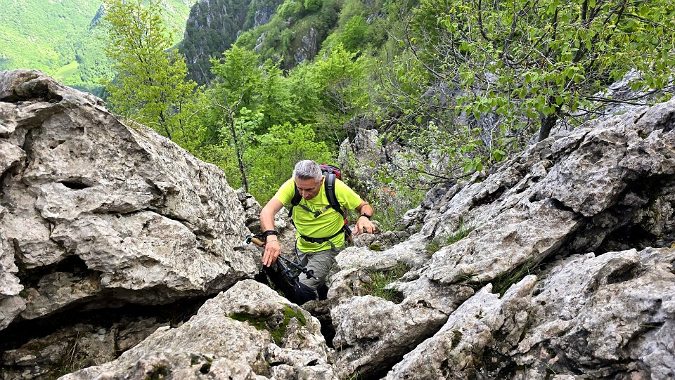 35 Per salire il Monte Ocone cima N si deve scalare un bel passaggio roccioso |