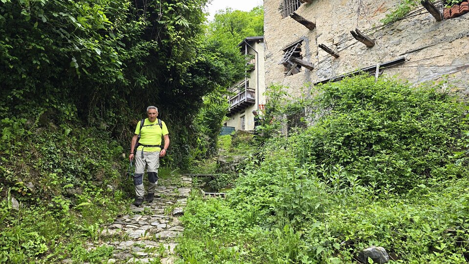 7 Risaliamo il paesino dove troviamo una freccia e l'inizio del sentiero |