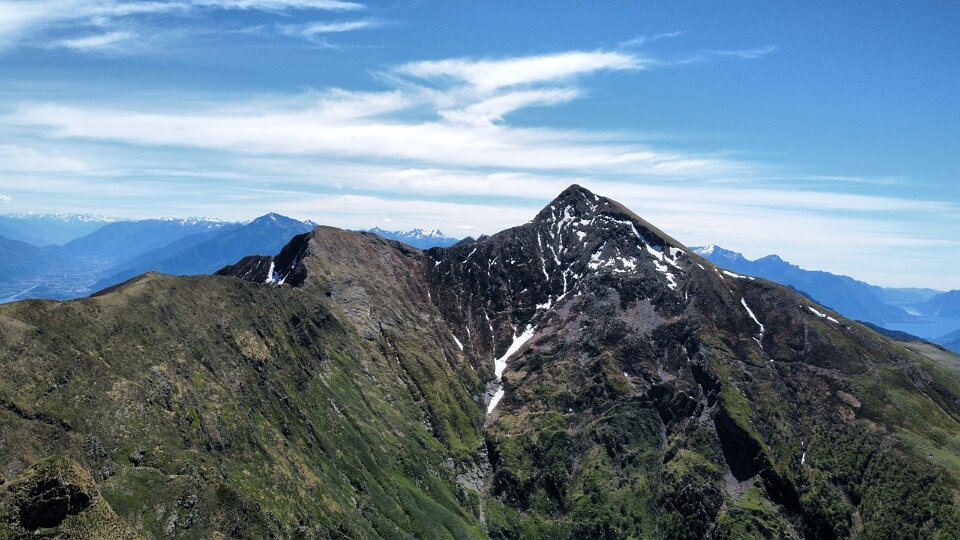 36 La prima cima di confine è il Mottone della Tappa o Cima della Valletta 2130m, dietro sulla destra il Camoghè |