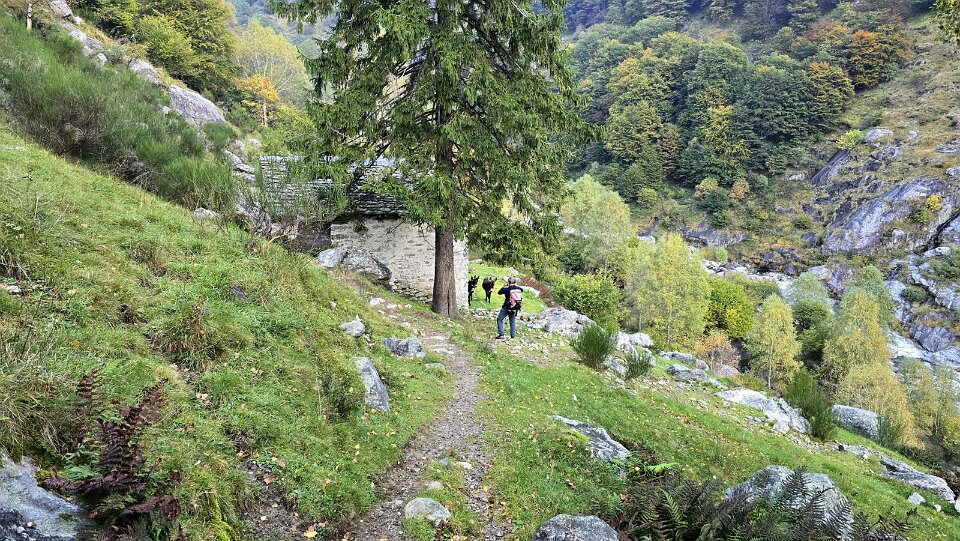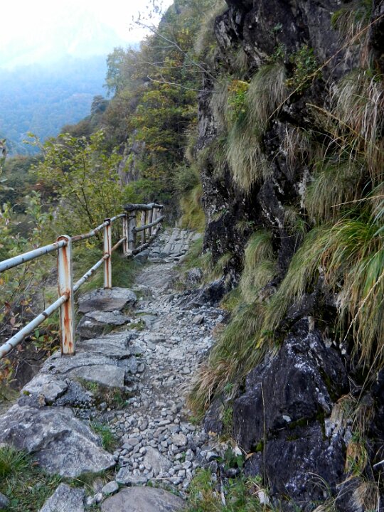 Si sale su sentiero lastricato, reso viscido dalle tante foglie di castagno