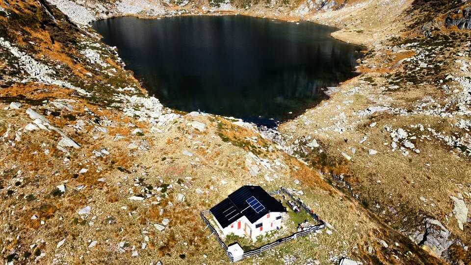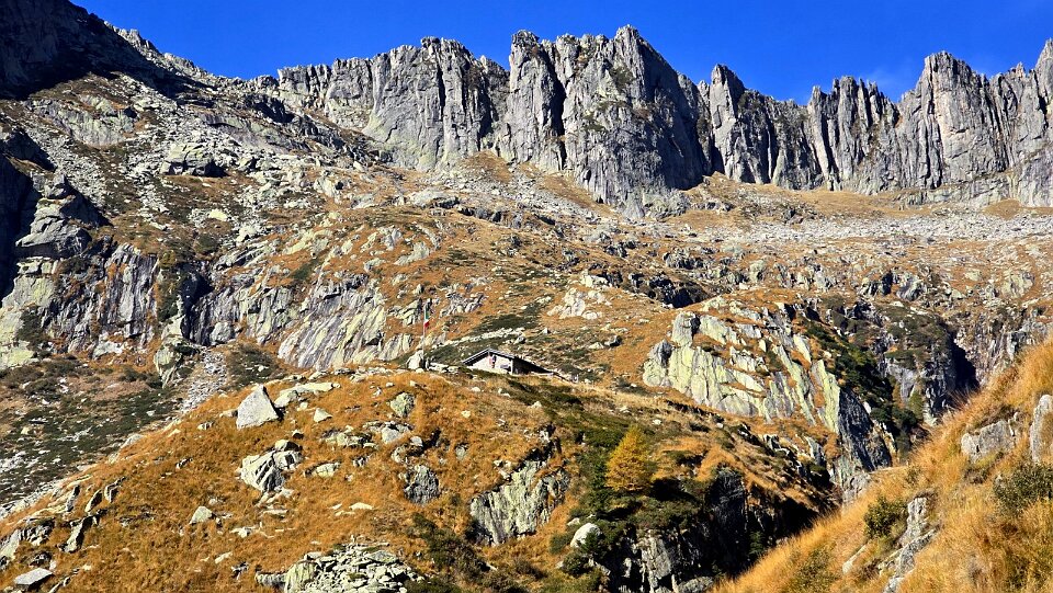 In alto sopra la bastionata c'è il lago ed il rifugio