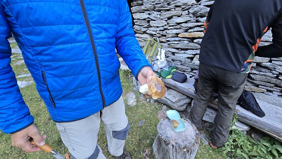 Gimmy pulisce un bel porcino trovato sul percorso