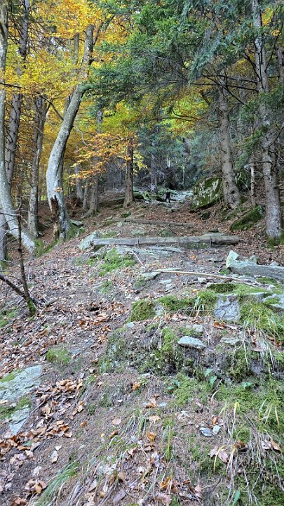E si sale ancora abbastanza ripidi nel bosco per sbucare al primo rifugio
