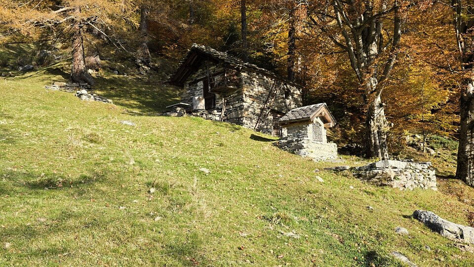 12 Zoom con al centro l'Alpe Laveggiolo, parte della baita a destra ospita il rifugio