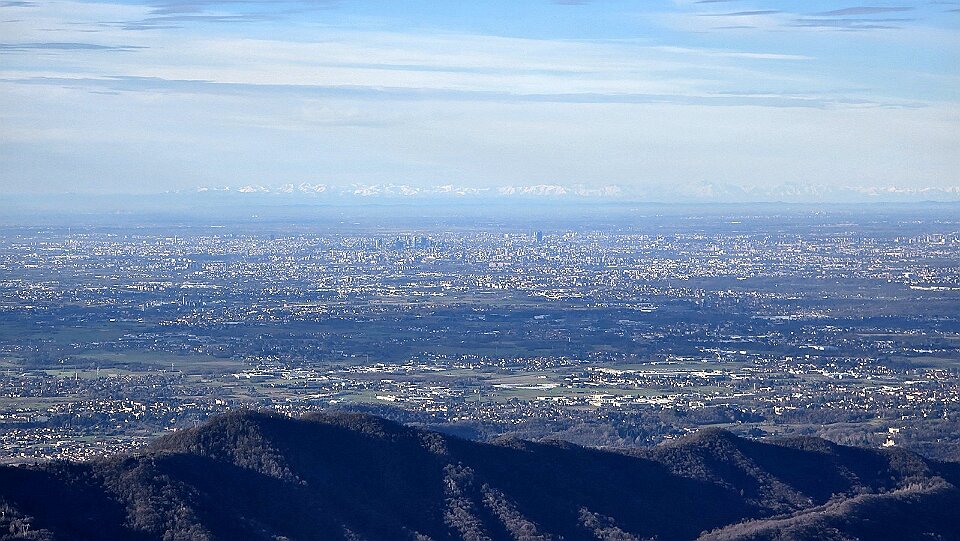 La pianura padana si distente sotto di noi
